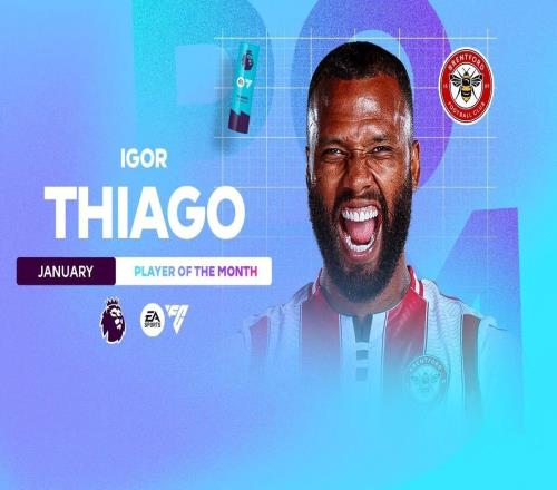 5场攻入5球,伊戈尔蒂亚戈当选英超1月最佳球员
