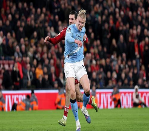 在安菲尔德破门,哈兰德英超客场对他交手2+次的对手时均进球