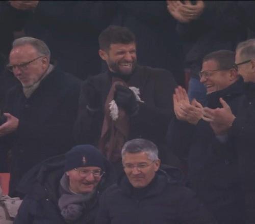 身份升级穆勒与埃贝尔同坐看台,欢笑庆祝卡尔进球