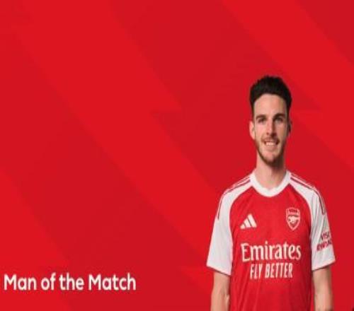 最终经过英超官网球迷投票,赖斯以38%的得票率当选全场最佳球员。