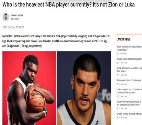 相比于锡安,约基奇的体脂明显更高,但生涯至今他却拥有超高的耐久度,与锡安形成鲜明对比。