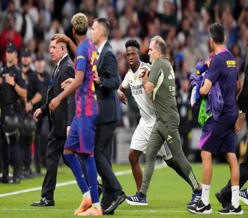 因此,新仇旧恨双方比拼必定是带着火药味的。在比赛打完后也是和皇马的队长卡瓦哈尔、主力维尼修斯等人发生了激烈的冲突,这也引发了拉菲尼亚、阿劳霍等多名主力参与其中。当然,主要的目的是为了保护他,不要让这个冲突变得越发的大。