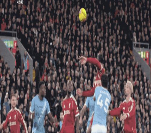 下半场开始后,场上风云突变,利物浦大举压上,曼城越踢越被动。第54分钟,接到萨拉赫的传中,埃基蒂克头球顶偏,错失良机。