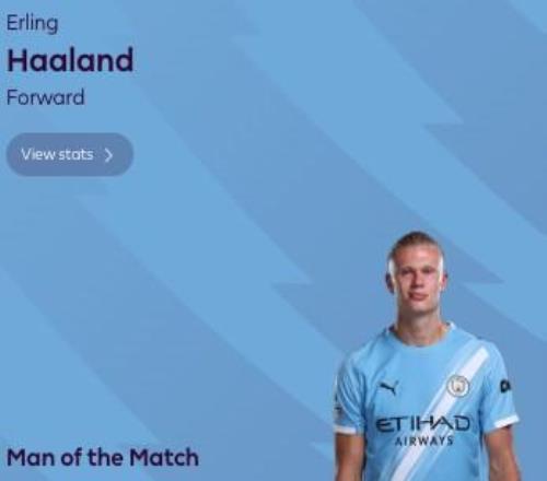 最终经过英超官网球迷投票,哈兰德以65%的得票率当选全场最佳球员。