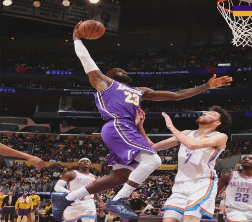 半场战罢,雷霆67-58领先湖人9分。湖人上半场三分球15中4,其中第二节单节6中1。以赛亚-乔半场7中6高效砍下16分,湖人里夫斯12分6助,詹姆斯8分2篮板3助攻3失误。易边再战,詹姆斯连续砍分,第三节单节4中3得到10分。