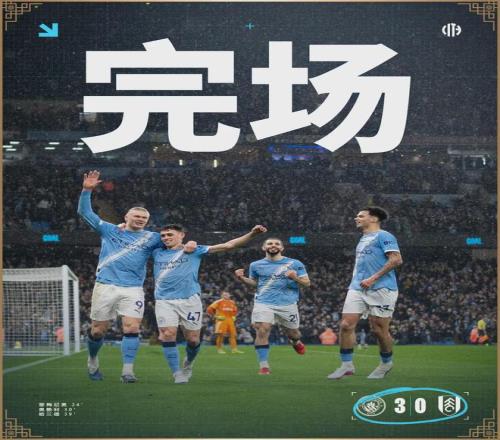 英超第26轮,伊蒂哈德球场,比分定格在3-0。