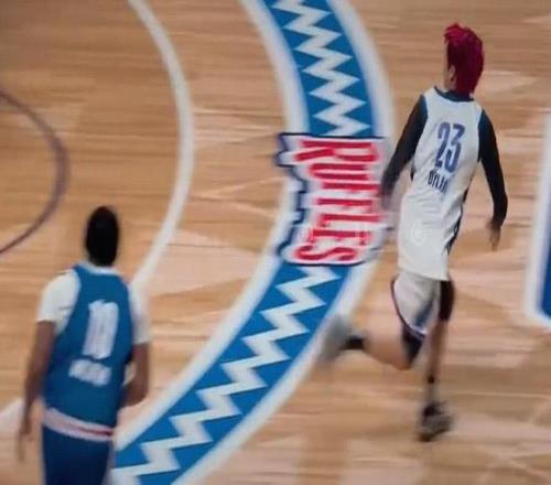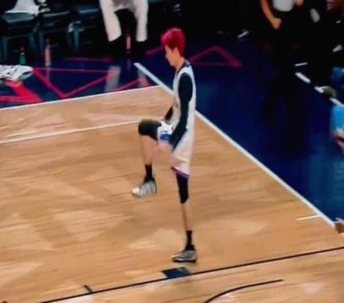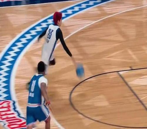 比赛进行到第一节中段时,中国艺人王鹤棣替补登场,在一次进攻中,王鹤棣提前启动下快攻,抢到防守篮板的林书豪心领神会送出长传,王鹤棣接林书豪传球完成上篮。
