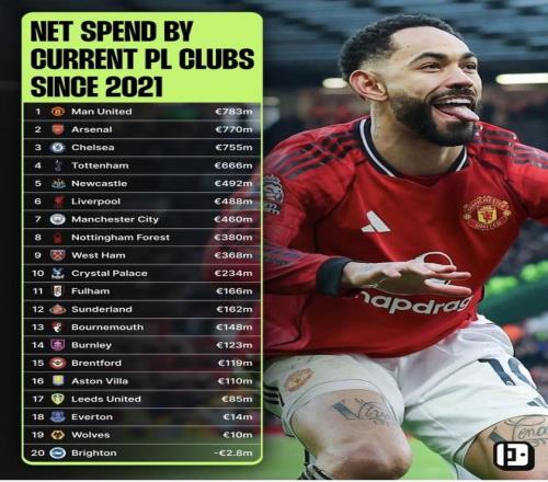 净支出是-280万欧元,但2021年以来最高能到第6。这个组合的含金量在这份名单里非常突出:钱几乎没净流出,名次上限却在欧战区边缘,转会操作和阵容迭代的效率是“反常识级别”的。