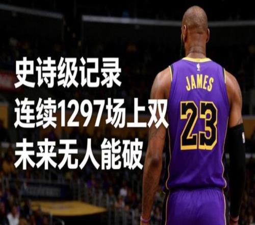 5、詹姆斯的连续得分上双纪录,1297场,堪称NBA历史第一的“稳定之王”