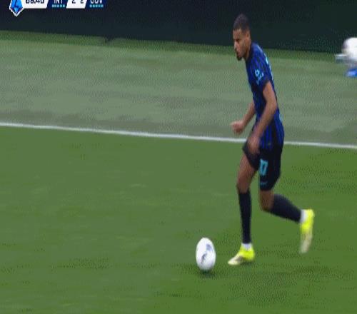 比赛开打后第17分钟,劳塔罗积极反抢断球,小图拉姆禁区前沿持球分向右侧,路易斯-恩里克似传似射推到门前,小坎比亚索伸腿一挡改变路线不慎将球挡进了自家球门,1:0!第26分钟,卡卢卢右路斜传,麦肯尼倒三角分球,乔纳森-戴维前点虚晃一枪,小坎比亚索后点垫射将功补过,1:1!